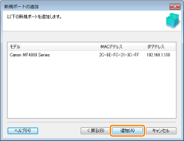 本体側で設定されているIPアドレスと異なる出力先の設定でインストールされます。インストール後、本体側で設定されているIPアドレスにあわせてポートの設定を行ってください。