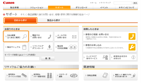 [目的から探す]の[Q&A検索(よくあるご質問)]をクリックします。