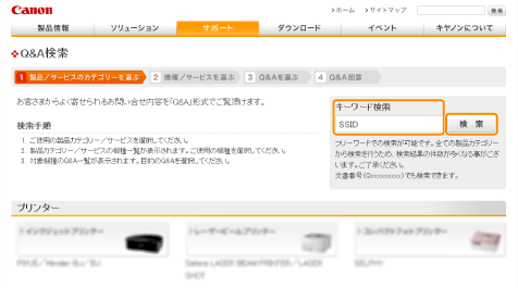 [キーワード検索]に”SSID”と入力して、[検索]をクリックします。