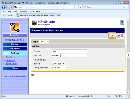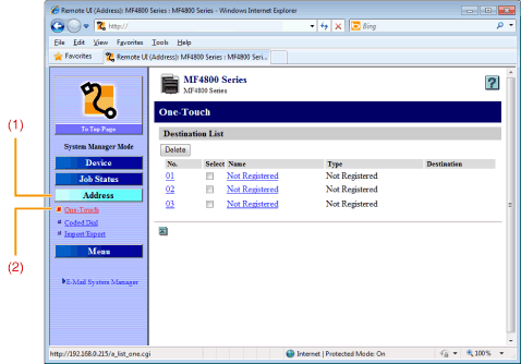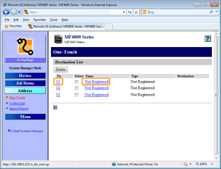 ] or [ ] to highlight the number of the one-touch key you want to register, and then press [OK].![]() |