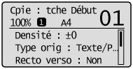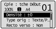 Lorsque l'écran du mode Copie s'affiche, vous pouvez effectuer votre sélection en appuyant sur [