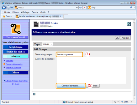 ] ou [ ] pour sélectionner <Modifier le Carnet d'adresses>, puis appuyer sur [OK].![]()