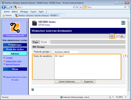 Sélectionnez le destinataire à supprimer dans [Liste de membres], puis cliquez sur [Supprimer].