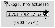 ] ou [ ] pour sélectionner un format d'heure, puis appuyez sur [OK].Les formats d'heure comprennent les suivants : 12 heures (AM/PM)