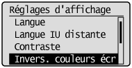 ] pour sélectionner <Contraste> ou <Invers. couleurs écran>, puis appuyer sur [OK].