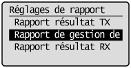 ] pour sélectionner <Rapport de gestion de communication>, puis appuyer sur [OK].