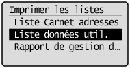 ] pour sélectionner <Liste données util.>, puis appuyer sur [OK].