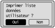 Indiquez si vous voulez imprimer la liste des données utilisateur.