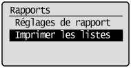 ] pour sélectionner <Imprimer les listes>, puis appuyer sur [OK].