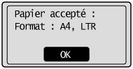 S'assurer que le papier est chargé dans une source d'alimentation papier, puis appuyer sur [OK].