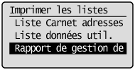 ] pour sélectionner <Rapport de gestion de communication>, puis appuyer sur [OK].