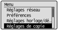 Utiliser [] ou [] pour indiquer <Réglages de copie>, puis appuyer sur [OK].