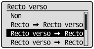 ] pour sélectionner <Recto verso>, puis appuyez sur [OK].