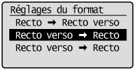 ] ou [ ] pour sélectionner <Recto verso -> Recto verso>, puis appuyez sur [OK].![]() |