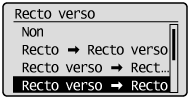 ] pour sélectionner <Recto verso>, puis appuyez sur [OK].