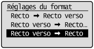 ] ou [ ] pour sélectionner <Recto verso -> Recto>, puis appuyez sur [OK]. ![]() |