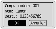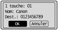 Si l'option <Confirmation envoi 1 touche/Comp. codée> est réglée su <Oui> et que le destinataire est mémorisé à l'aide d'un bouton de composition 1 touche ou un code de composition codée, l'écran s'affiche.