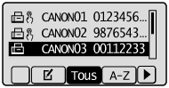 Après recherche des destinataires dans le carnet d'adresses (boutons de composition 1 touche, numérotation codée ou numérotation groupée), les destinataires à indiquer apparaissent sur l'afficheur. Vous pouvez définir l'adresse affichée comme destinataire. Vous pouvez également rechercher des destinataires à l'aide des initiales du nom mémorisé.