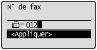 Entrer l'indicatif national, l'indicatif local et le numéro de fax/de téléphone à l'aide du clavier numérique.