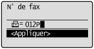 ] (Recomposer/Pause) pour ajouter une pause à la fin du numéro de fax/téléphone le cas échéant, puis appuyez sur [OK].