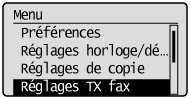] pour sélectionner <Réglages TX fax>, puis appuyer sur [OK].