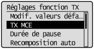 ] pour sélectionner <TX MCE>, puis appuyer sur [OK].