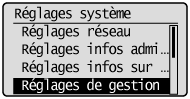 ] pour sélectionner <Réglages de gestion de communication>, puis appuyer sur [OK].