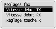 ] pour sélectionner <Vitesse début TX>, puis appuyer sur [OK].