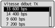 ] pour sélectionner la vitesse de début d'envoi, puis appuyer sur [OK].
