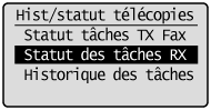] pour sélectionner <Statut des tâches RX>, puis appuyer sur [OK].