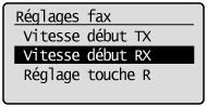 ] pour sélectionner <Vitesse début RX>, puis appuyer sur [OK].