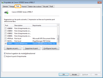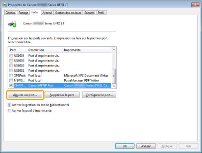 Si le pilote d'imprimante installé utilise un port différent que celui affecté à la machine, vous devez le configurer afin qu'il corresponde à l'adresse IP de la machine.