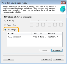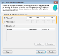 Lorsque l'adresse IP de la machine est modifiée, vous devez reconfigurer le port afin qu'il corresponde à l'adresse IP de la machine.