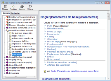 L'aide en ligne affiche des informations supplémentaires sur chacune des options d'impression. Si le manuel électronique ne fournit pas les informations que vous cherchez, consultez l'aide en ligne.