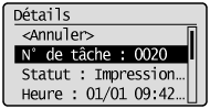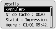 ] pour sélectionner <Oui>, puis appuyez sur [OK].La tâche d'impression est alors annulée. ![]() |