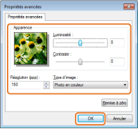 Cliquez sur [Paramètres personnalisés] pour définir des réglages détaillés dans la boîte de dialogue [Propriétés].