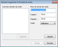 Permet d'ajouter le format de sortie spécifié sous [Liste des formats de sortie].