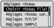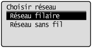 ] pour sélectionner <Réseau filaire> ou <Réseau sans fil>, puis appuyez sur [OK].