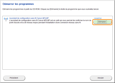L'Assistant de configuration sans fil Canon MF/LBP est inclus sur le CD-ROM User Software CD-ROM fourni avec la machine.