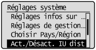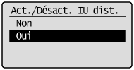 ] pour sélectionner <Act./Désact. IU dist.>, puis appuyez sur [OK].