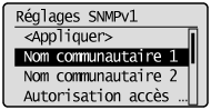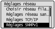 ] pour sélectionner <Réglages SNMPv1>, puis appuyez sur [OK].