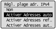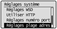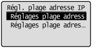 ] pour sélectionner <Réglages plage adresse IPv4> ou <Réglages plage adresse IPv6>, puis appuyez sur [OK].