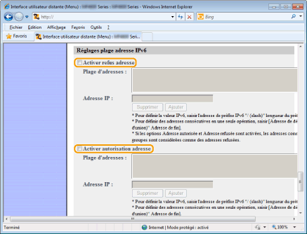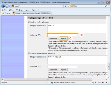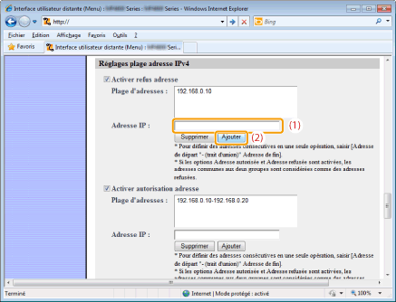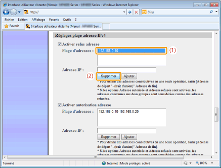 Spécifiez la plage d'adresses IP à accepter ou à refuser.
