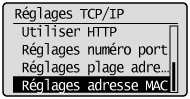 ] pour sélectionner <Réglages TCP/IP>, puis appuyez sur [OK].