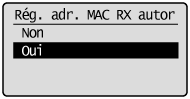 ] pour sélectionner <Réglages adresse MAC RX autorisée>, puis appuyez sur [OK].