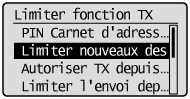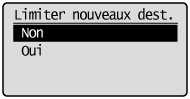 ] pour sélectionner <Limiter nouveaux destinataires>, puis appuyez sur [OK].