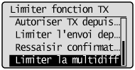 ] pour sélectionner <Limiter fonction TX>, puis appuyez sur [OK].