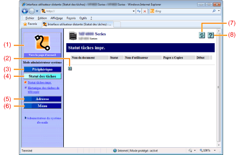Affiche l'état actuel des tâches d'impression, etc.