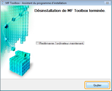 Si vous n'avez pas besoin du pilote d'imprimante, du pilote de fax, du pilote de scanner, de MF Toolbox ou du programme de questionnaire étendu sur le produit, vous pouvez les désinstaller en procédant comme suit.
