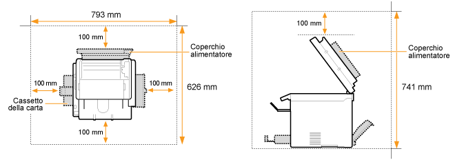 (se si utilizza la macchina per molto tempo o si effettua una grande quantità di stampe in una stanza poco ventilata, l'ozono o le altre esalazioni generate dalla macchina potrebbero rendere l'ambiente di lavoro poco confortevole. Inoltre, durante la stampa vengono liberate particelle chimiche, dunque è importante che vi sia un'adeguata ventilazione.); |